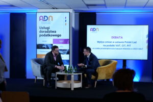 W drugiej części konferencji odbyła się debata „Wpływ zmian w ustawie Polski Ład na podatki VAT, CIT, PIT”, którą poprowadził Partner Zarządzający ADN Podatki p. Marcin Chomiuk z udziałem gościa specjalnego p. Pawła Selery, Dyrektora Departamentu VAT z Ministerstwa Finansów. Bardzo interesująco było podyskutować wspólnie o aktualnych wyzwaniach i szansach przed którymi stoją podatnicy w 2023 roku, w tym w szczególności w zakresie tematyki Krajowego Systemu e-Faktur.